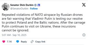 - Violation has been denounced by U.S. politicians; a good example is Senator Dick Durbin who described the recurrent attacks as a wake-up call by President Putin to see how far NATO would go. In the same manner, other U.S. personalities have packaged this as a possible basis of additional sanctions.